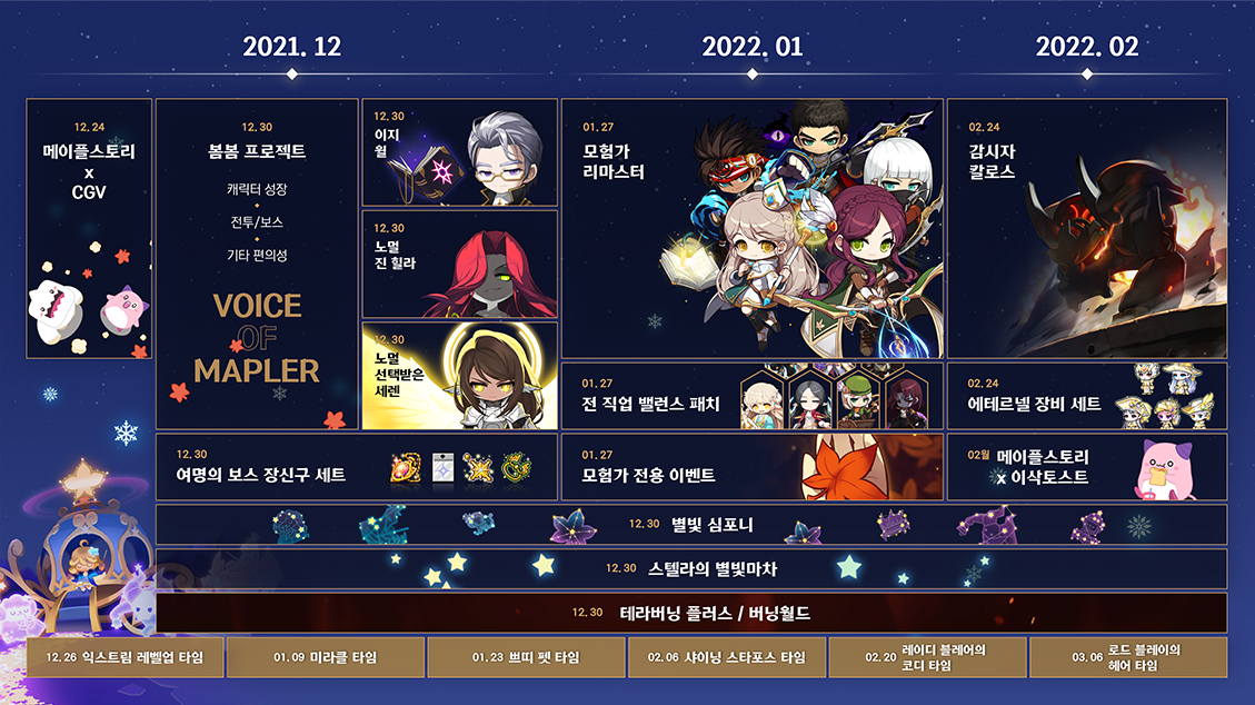 메이플스토리가 12월 23일 겨울 쇼케이스를 통해 올 겨울 DESTINY 업데이트 일정을 발표했다.